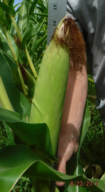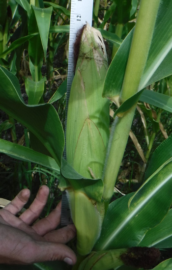 Let's start with the ears. The ultimate measure of a plant's health is the reproductive results. As you can easily see, the treated ear on the left is much longer than the untreated ear.