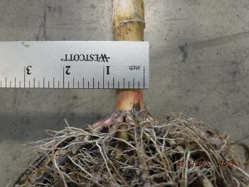 As the season drew to a close and the farmer prepared to harvest the corn, we went back out into the field and dug up one treated plant and one untreated plant. We wanted to see the difference in the root systems and also get some weights and final measurements.