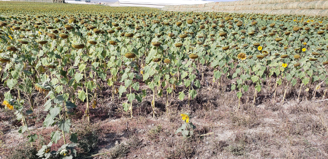 One of our most amazing fields this year was this field of sunflowers from one of our farmers near Billings, MT. These are dryland, dependent on whatever rain comes their way, and there wasn't very much through the summer. According to our Abe, he has people coming from as far as 50 miles away to look at his field. The most common comment he hears is "that's impossible!"
