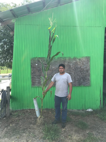 The pictures below come from a planter down in Florida. The corn was planted late, and the seed was not treated, but they did apply Bio Release in furrow at planting. They also applied a Bio Minerals Technologies foliar mixture to the corn while they could still get on the field. For late corn, the root growth and stalk height are impressive. These pictures were taken at the end of July.